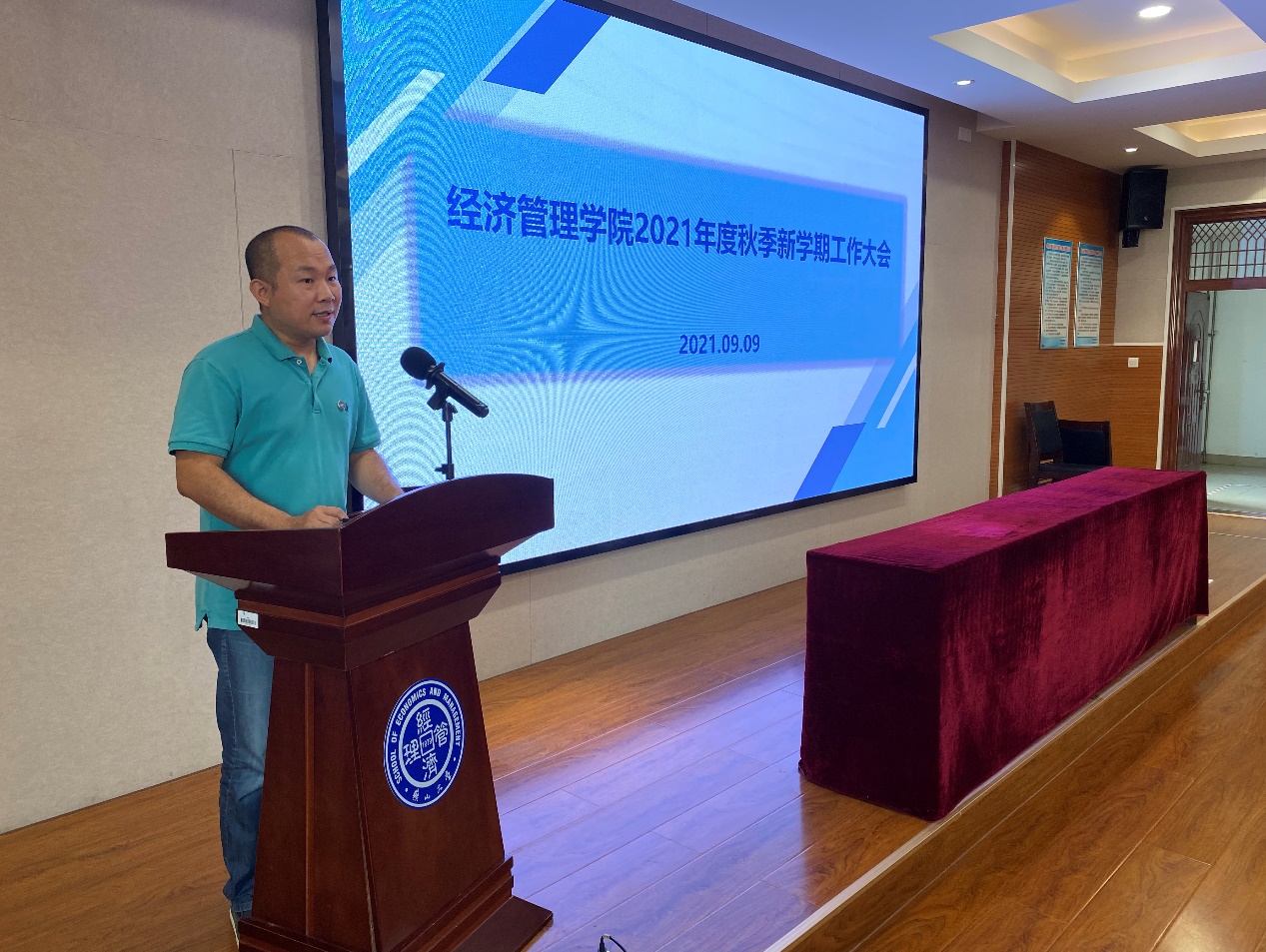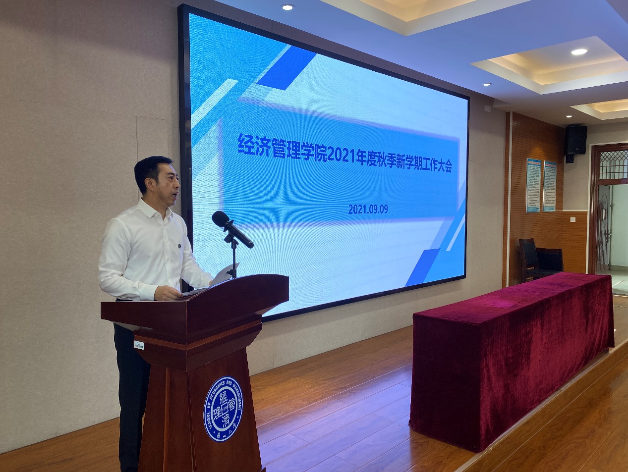 以经管楼A218报告厅为主会场召开了2021年秋季新学期工作视频会议,学院领导班子成员、全院教职员工参加了会议。会议由党委书记翁钢民主持。