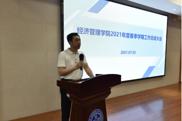 在经管楼A218会议室召开2021春季学期工作总结大会。大会由学院党委书记翁钢民主持,全院教职工参加了会议。