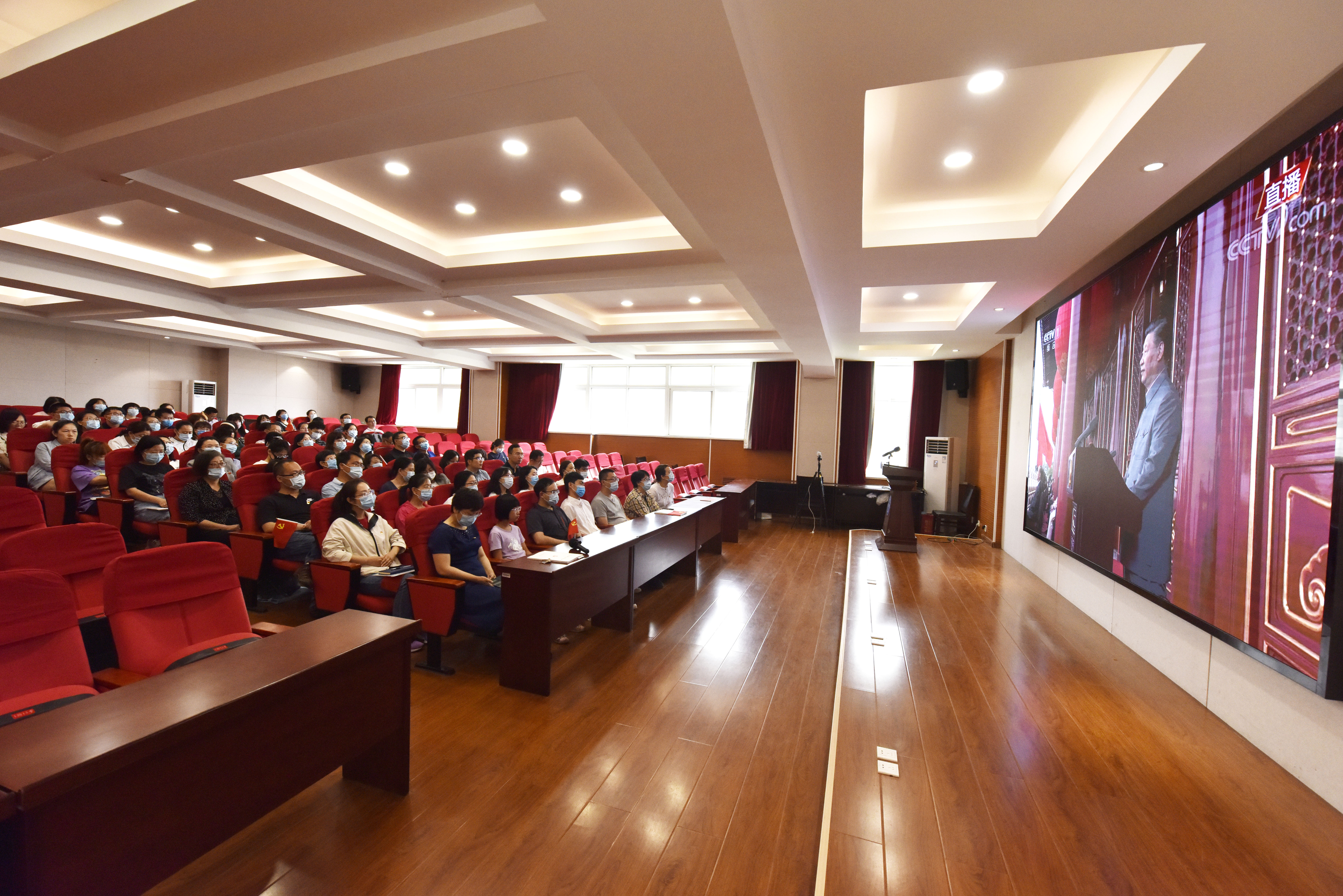 党委在经管楼A218报告厅组织观看大会直播。学院全体教职工党员以及学生党员代表参加观看。直播观看由学院正处级专职辅导员刘琳主持。