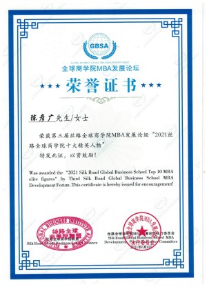 MBA项目荣获“全球商学院最具品牌价值MBA项目”奖,副院长陈晶璞荣获“全球商学院MBA杰出贡献”奖,MBA杰出校友陈彦广荣获“全球商学院MBA十大精英人物”奖,2020级MBA学员张梦瑶、解通被评为“全球商学院MBA新秀”与“全球商学院校友创新创业企业之星”,MBA教育中心主任刘海鸥荣获“全球商学院最受学生喜爱老师”奖。