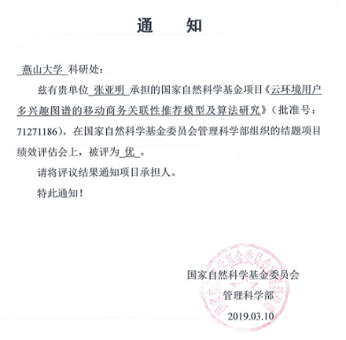 张亚明教授主持完成的国家社会科学基金规划项目“非传统安全事件虚实耦合互动的网络群体集聚舆情传播研究(18BXW118)”结题鉴定结果为“优秀”等级。这是继张亚明教授研究团队刘海鸥副教授4月份获得我校第一个国家社科基金结题“优秀”后的又一突出成果,张亚明教授也成为我校第一个国家自然科学基金与国家社会科学基金均获得立项且结题都为“优秀”的科研人员。