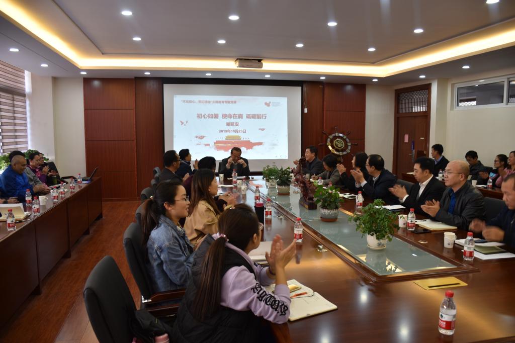 “不忘初心、牢记使命”主题教育实施方案》安排,10月25日14时30分,校党委副书记,校“不忘初心、牢记使命”主题教育领导小组副组长、办公室主任谢延安在经管楼A216会议室以“初心如磐,使命在肩,砥砺前行”为主题,为统战部、工会、安全工作处、av中文