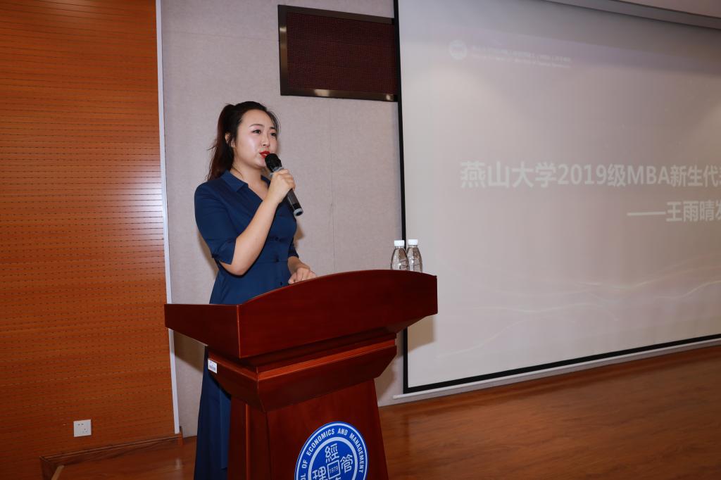 2019级MBA新生代表王雨晴表达了对学习机会的珍惜,与同学相约用知识照亮前程,寻找变革的力量。