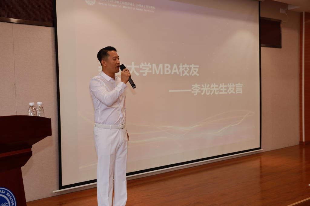 2006级MBA校友李光分享了求学经历与事业感怀,希望新同学“永怀感恩之心,真情回报社会”。