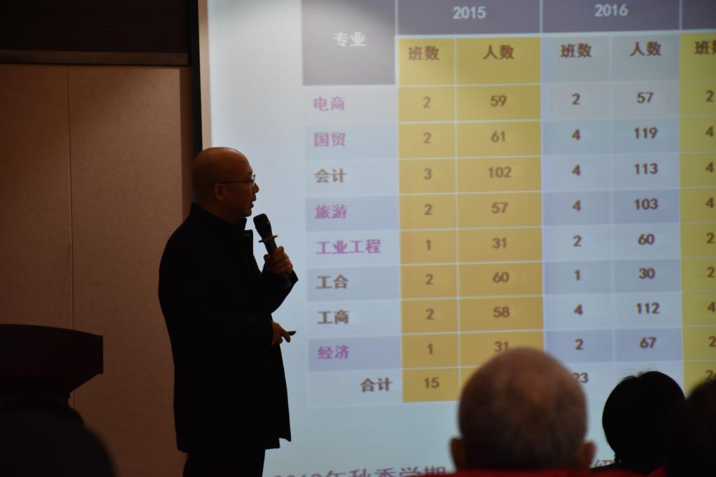 兢兢业业的付出和所做的贡献表示感谢。陈老师深情回顾了16年来与一届又一届的经管学子在一起的教学与科研岁月,虽然光荣退休了,但退休不退岗,他将会一如既往地为学校、学院的事业发展建言献策,贡献正能量。
