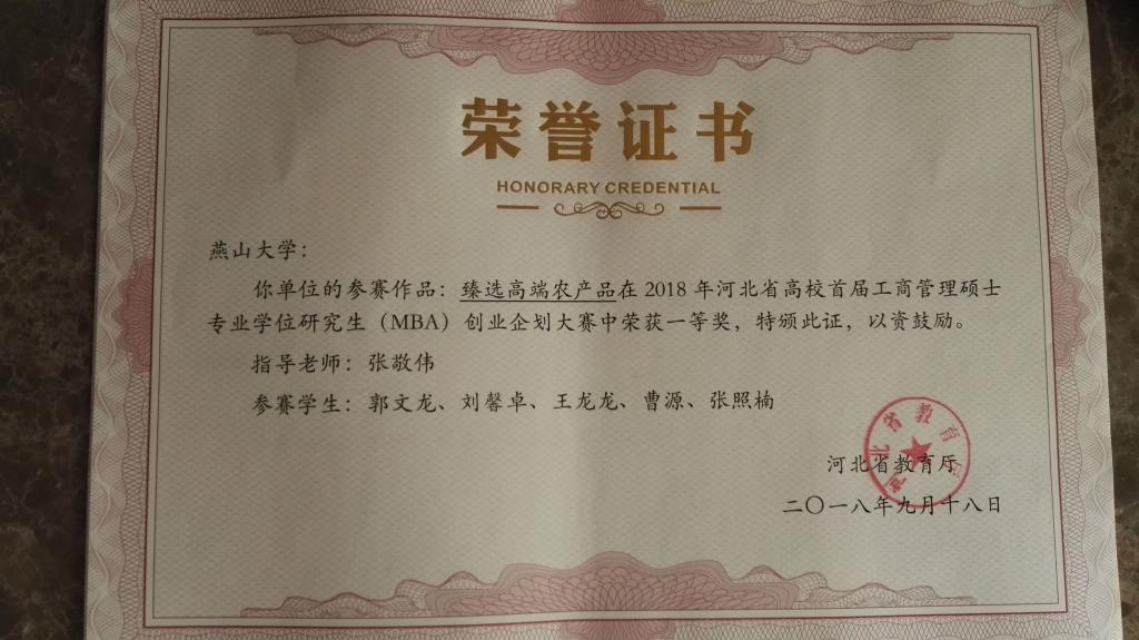 2018年10月14日下午,由天津市教育委员会、北京市教育委员会、河北省教育厅联合主办的首届京津冀MBA专业学位研究生尖峰时刻创业企划大赛圆满闭幕。我校2017级MBA学员郭文龙、刘馨卓、王龙龙、曹源、张照楠等5人的参赛作品《臻选高端农产品》荣获大赛二等奖,我校张敬伟教授荣获最佳指导教师,av中文