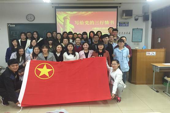会计三班团支部团结一致,积极进取,率先垂范,争做有理想、有担当的团员青年,目前团支部34名团员全部递交入党申请书。所有团员青年积极响应习近平总书记号召,弘扬五四精神,绽放青春激情,努力锤炼自己、提高自己;回顾党的光辉历程,体会革命前辈浴血奋战的艰辛,向党写下深情款款的情书;当意识到中华传统文化面临传承困难,利用诗词歌赋,灯谜对联等学习方式,感受翰墨书香,自觉传承古典文化;拒绝手机依赖症,走进绿草如茵的操场,拥抱明媚阳光,过更加充实的大学生活;从身边小事做起,拒绝使用一次性筷子,创造绿色时尚,共建美丽中国。他们时刻牢记自己入学时的梦想,他们一直不忘初心,力争在燕大遇到最好的自己。