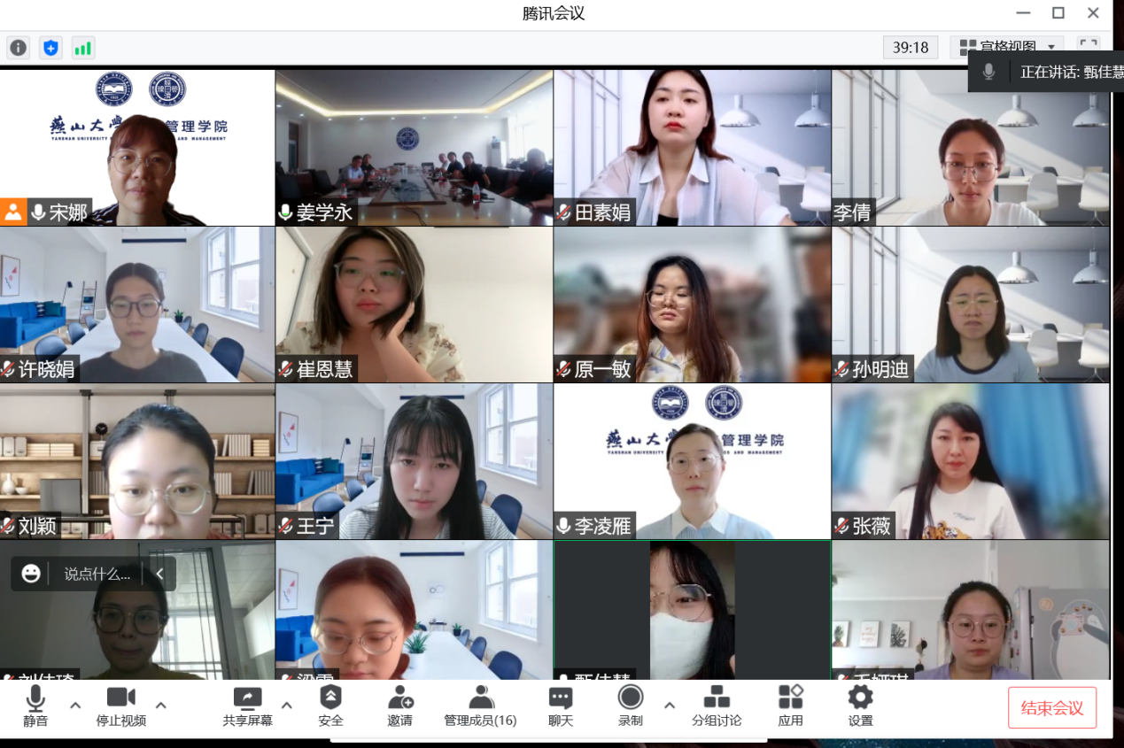 为即将参加援疆实践活动的旅游管理专业研究生举行了线上欢送动员会。学院党委书记张振华、院长李春玲出席会议并讲话,参加会议的还有正处级辅导员刘琳、副院长陈晶璞、副院长靖鲲鹏、副书记张志超、学院团委书记张薇、旅游系党支部书记李凌雁、系主任宋娜,2020级已经参加过援疆项目的毛娅琪、王宁同学和2021级、2022级即将出发奔赴新疆的田素娟等10位同学。宋娜老师主持会议。