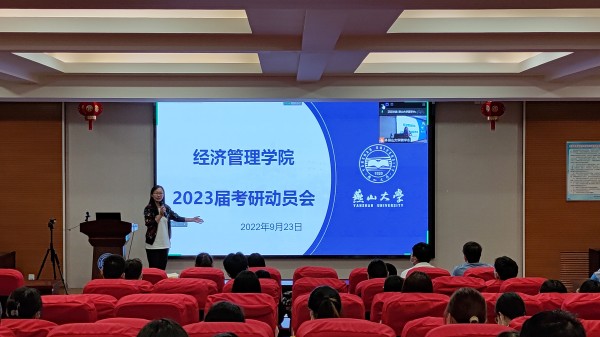 2023届毕业生考研动员会在经管楼A218会议室召开。此次会议以促进学生顺利开展考研预报名,做好9-12月份备考规划为出发点,根据疫情防控要求,采取线上线下相结合的方式进行,毕业班辅导员李宁、张梦及2023届全体考研学生参会。