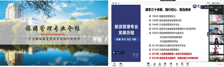 旅游管理专业自1985年开始筹建,建系三十余载,始终践行初心使命。专业在2000年获批河北省首家旅游管理硕士学位授予权,2008年获批教育部特色专业建设点、河北省本科教育创新高地、河北省品牌特色专业,2012年获批河北省综合改革试点专业,2019年入选首批国家一流本科专业建设点,2022年旅游系党支部获评教育部第三批全国党建工作样本支部。