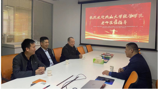 4月7日,张志超一行首先拜访了1994级工业外贸专业校友蒋铁军,并参观了上海德容智能科技有限公司总部及生产基地。张志超代表学院,对蒋铁军校友长期以来心系母校发展,助力师弟师妹成长,倾情捐款捐物,植树育林美化学院环境,设立奖教金奖励教书育人楷模,表示衷心的感谢和崇高的敬意;他介绍了学院现状和发展目标,并送上全院师生美好的祝福和诚挚的邀请。张志超强调,蒋铁军校友在2019年创业之初的艰难阶段,不忘母校,在学院设立“德容奖”,是学校历史上第一支同时是迄今额度最高的专项奖教金,令师生动容;他表示,校友企业虽处于初创期,但发展前景广阔、势头强劲,校企双方可以在技术转化、人才培养等方面相互助力、实现共进共赢。王玖河作为蒋铁军在校期间辅导员,介绍了学院和工商管理专业人才培养、科学研究和实习实训等情况,重点围绕人才培养和实习实训进行了分析,希望通过校企资源共享、共同培养更多高质量创新人才,实现学校、企业、社会、学生多方共赢。蒋铁军深情回顾了在母校的求学岁月,讲述了个人成长历程,介绍了公司发展历程、经营现状、业务板块与未来规划;表达了对学校艰苦奋斗、严谨治学精神的感念,对老师们精益求精、言传身教态度的感谢;他希望,在人才培养、协同创新等方面与母校加强沟通,共同培养更多优秀人才。双方还就未来校企合作、人才培养、捐资助学等方面就行了深入交流。