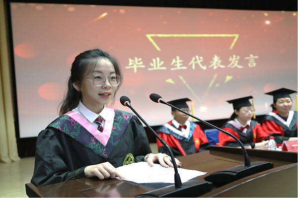 的美好生活,感激了母校和老师的培育之情,并代表全体毕业生们表达对母校的眷恋及未来努力奋斗、不负师恩、为校争光的决心。