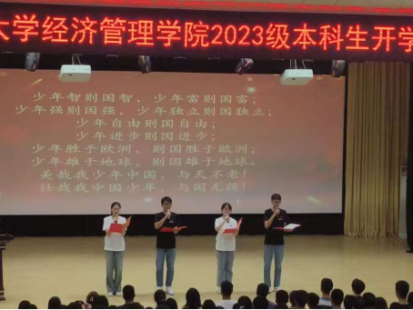 院长李春玲致欢迎词。她首先代表全院3400名教师和在校生,热烈欢迎587名本科新同学加入经管大家庭。随后,她简要回顾了学院发展历程,以及教书育人、科学研究和服务社会成果。她强调,办学44年来,一代又一代经管人不忘立德树人初心,牢记为党育人、为国育才使命,坚持以“关爱学生、关心教师、关注发展”为理念,以“学生有成长、教师有期盼、社会有认可”为目标,立足服务区域经济建设,积极助力中国社会发展,躬耕树蕙、弦歌不辍,源源不断地为国家改革开放和社会主义现代化建设事业培养输送了3万余名德才兼备、视野宽广、敢于担当的经济和管理人才。她指出,现阶段学院正在持续巩固深化学习贯彻习近平新时代中国特色社会主义思想主题教育成果,深入落实“立德树人”根本任务,着力开展“三全育人”综合改革,持续推进学院内涵式发展,不断书写新时代教书育人的精彩篇章。她希望,在新的人生起点上,全体2023级新同学要牢记燕大校训、抢抓时代机遇、找准人生坐标、加强自身修养、保持学习热情、培育探索精神,重德敬业、守正创新,努力成为有理想、敢担当、能吃苦、肯奋斗的新时代好青年,努力成为有经济头脑、有管理能力、有合作精神、有商业道德的务实型、复合型和应用型管理人才。