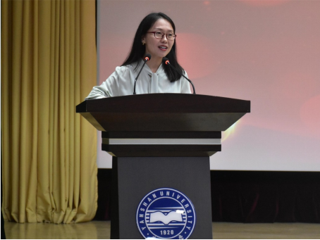辅导员代表李宁发言。她为全体新生送上“信心”“耐心”“决心”三颗心,表示将坚定地成为新生思想的指路人、学业的引导人、情感的守护神和生活的勤务兵,为大家成长保驾护航。