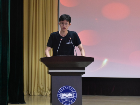 新生代表2023级本科生张雪阳发言。他代表全体新生表达了初入燕园的喜悦与对未来的美好憧憬,他表示,作为经管新生代,全体2023级同学未来四年的大学生活一定不辜负师长和亲人期望,努力收获燕园的“经”彩之旅。