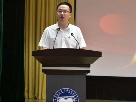 专业教师代表逯宝峰发言。他代表学院全院教师表达了对新同学的殷切期盼,希望全体新同学青蓝接续、薪火相传,以更足的自信、更高的志气、更强的闯劲,续写追求卓越的新篇章。