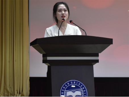 在校生代表2020级本科生关舒心发言。她建议学弟学妹调整入学心态,培养良好学习习惯,积极自我探索,充分实践锻炼,并以亲身经历的成长感悟,鼓励全体新同学在未来的求学生活中乘风破浪、厚积薄发。