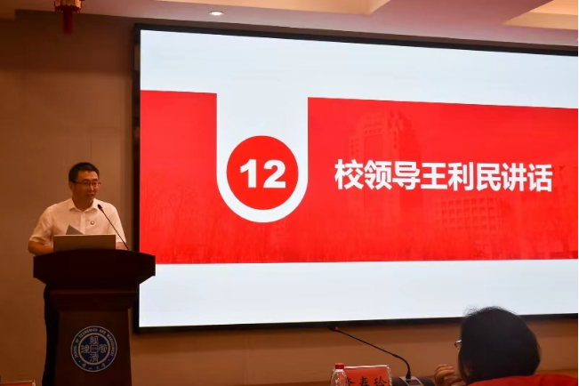 党委常委、副校长王利民教授讲话,他对2023级新生表示了热烈欢迎和衷心祝贺,详细介绍了av中文