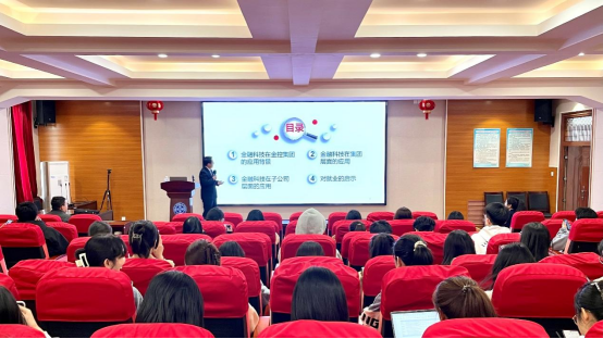 兼职教授宁晓博士,为我校师生深入浅出地讲解了金融科技在金控集团和子公司层面的应用以及对就业的启示等。讲座由正处级专职辅导员杨小丽主持。