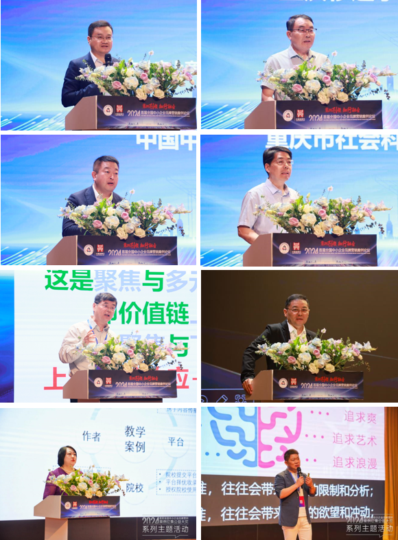 本次论坛以“案例引领 知行融合”为主题,以“服务会员·事业发展、服务大学·产教融合、服务企业·品牌引领”为目的。重庆移通学院党委书记何先刚,中国中小企业协会副秘书长周晟安,重庆市社会科学界联合会副主席潘勇分别代表主办单位、业务和主管部门致辞,强调要深入贯彻落实党中央、国务院《质量强国建设纲要》关于“鼓励支持中小微企业实施技术改造、质量改进、品牌建设”的部署要求,切实凸显全国中小企业品牌营销典型案例在“学研用”等方面的综合价值。丹麦哥本哈根商学院中国企业管理领域终身正教授李平以“专精特新企业发展战略的Y型路径模式”为题作了主旨演讲;全国品牌社团组织联席会主席、中国中小企业协会副会长徐浩然分享了“AI时代的品牌塑造”主题报告;清华大学av中文 中国工商管理案例中心行政主任赵子倩就“工商管理教学案例的中国范式与国际范式”进行了解读;重庆移通学院冲突营销学院院长丁士安做了“用冲突理论打造强势品牌”的主旨演讲;亚太营销国际学术会议(APMA)创始理事长、中国高校市场学研究会副会长、中山大学二级教授王海忠以“品牌新质生产力战略”为题作了主题报告。专家们的演讲和报告严谨不失新潮、前沿不失趣味、专论不失体系,是企业、科技、品牌、营销和案例五大领域融合融通的一次思想碰撞,既深邃又朴实,极富启发性,赢得全场共鸣和阵阵掌声。