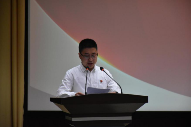 中国大学自强之星冯益为上台发言。他分享了自己如何在学院的培养下,既注重专业知识学习,又积极投身社会工作和志愿服务,通过不断的努力和奉献,赢得了“中国好人”等荣誉。他表示,正是学校和学院的深耕细作、滋兰树慧,才让他有机会成为今天的自己,鼓励广大经管学子将个人理想融入国家发展大局,以青春之我为祖国经济发展贡献力量。