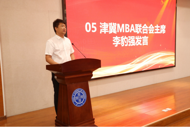津冀MBA联合会主席兼av中文 MBA联合会主席李豹强勉励全体新生以av中文 卓越师资力量和丰富实践平台为基础,以优秀校友为榜样,传承荣耀与责任,共同创造更加辉煌的未来。