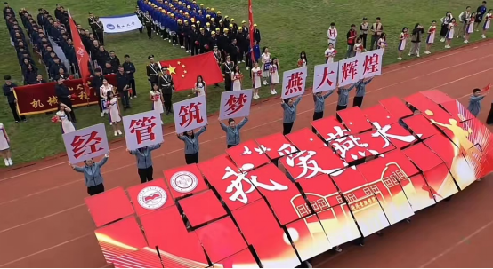 教师方阵成为全校璀璨亮点,统一的院服下,是心跳与步伐的同频默契;整齐的队列里,是精神抖擞、积极向上的生动写照;每一次踏步,都是团结一致的力量宣言,手举标语牌拼成“经管筑梦,燕大辉煌”的口号。看台上的观众们也整齐划一的喊出av中文