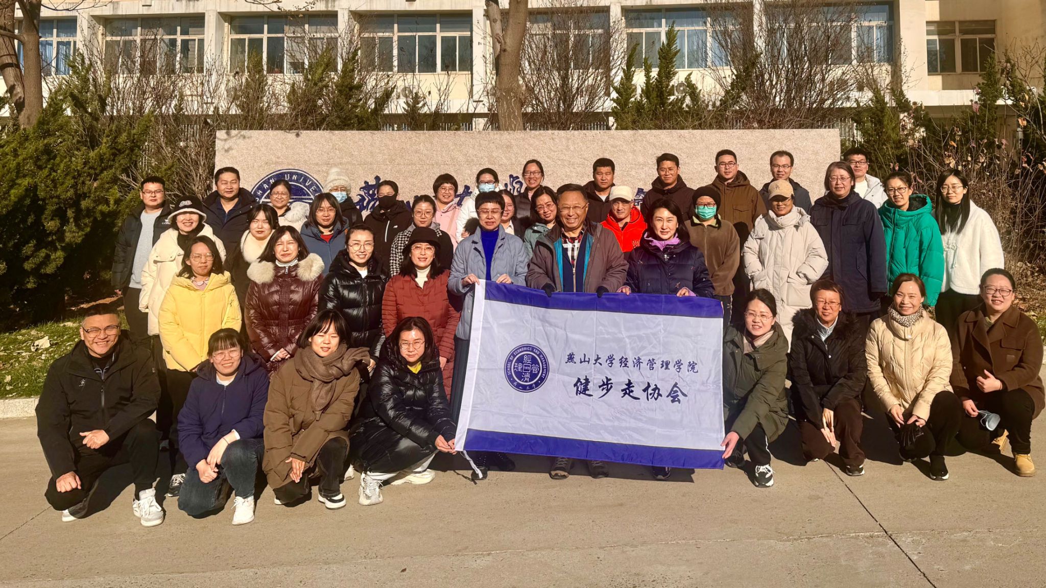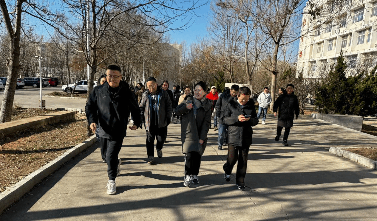 座谈结束后,全体教师在经管楼前合影,随后开始纪念“一二·九”运动校园主题健步走活动。教师们从经管楼A区门前出发,在分工会委员的引导下,途经景行路、新图书馆、里仁前主路、燕园餐厅、继续教育学院办公楼,整体行程约3公里,历时近四十分钟,最后顺利返回经管楼。活动过程中,虽然天气较为寒冷,但同志们依然精神抖擞、意气风发,大家欣赏着校园美景,边走边交流,缅怀先烈,享受来之不易的幸福生活。