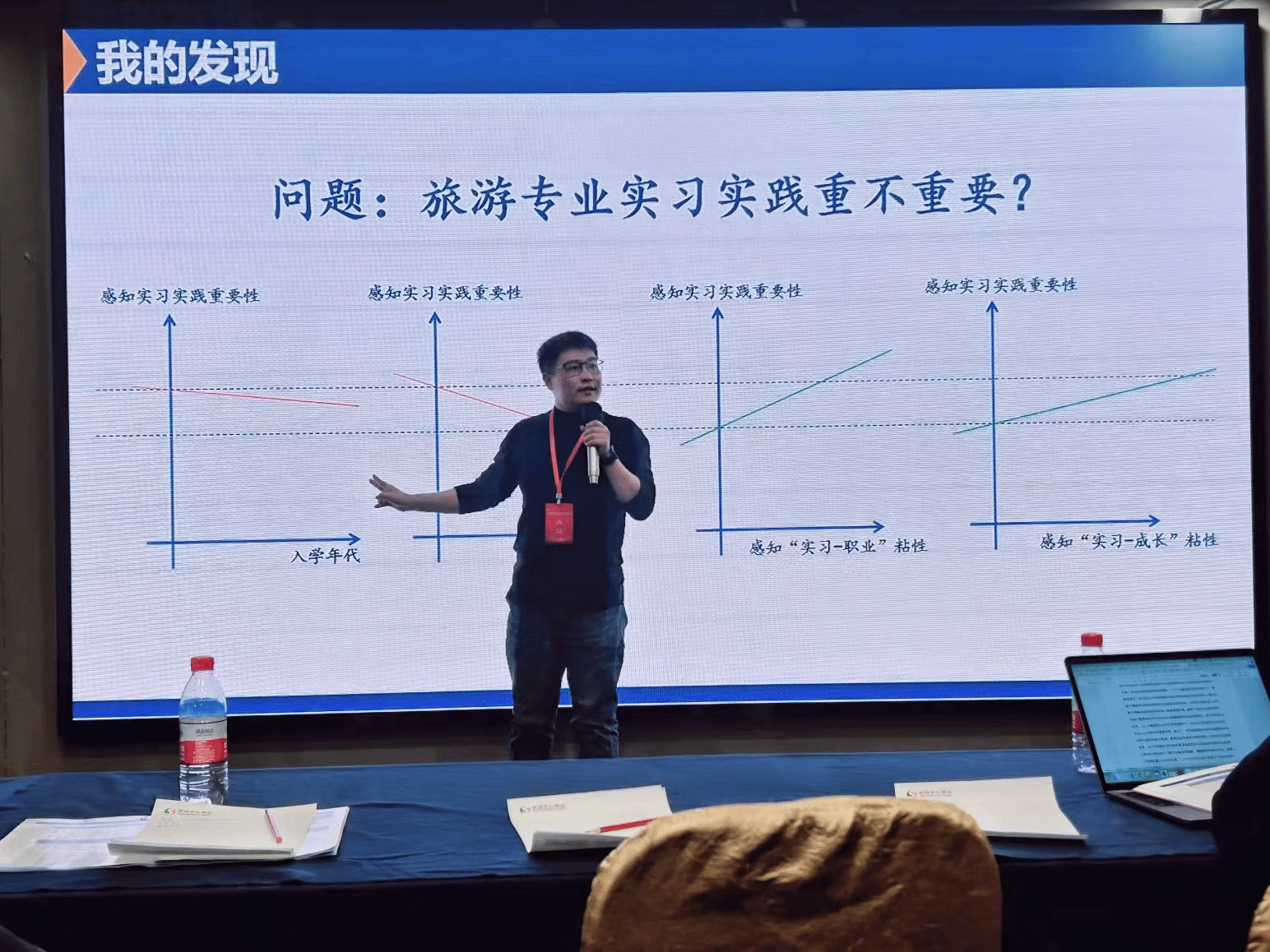 旅游管理系副主任高磊在“新技术新文科背景下旅游管理专业建设分论坛”作了题为《新时代旅游管理本科专业实习实践课程建设改革的思考》专题报告,对其主持的教改成果进行了详细介绍。报告从报告人的调研结果出发,对旅游专业实习实践的本质、定义和体系进行了详细的介绍,全面介绍并阐释了报告人构建的“旅游专业实习实践=泛旅游业+专业+实习/实践”新时代旅游管理专业实习实践概念框架,得到与会专家一致认可。
