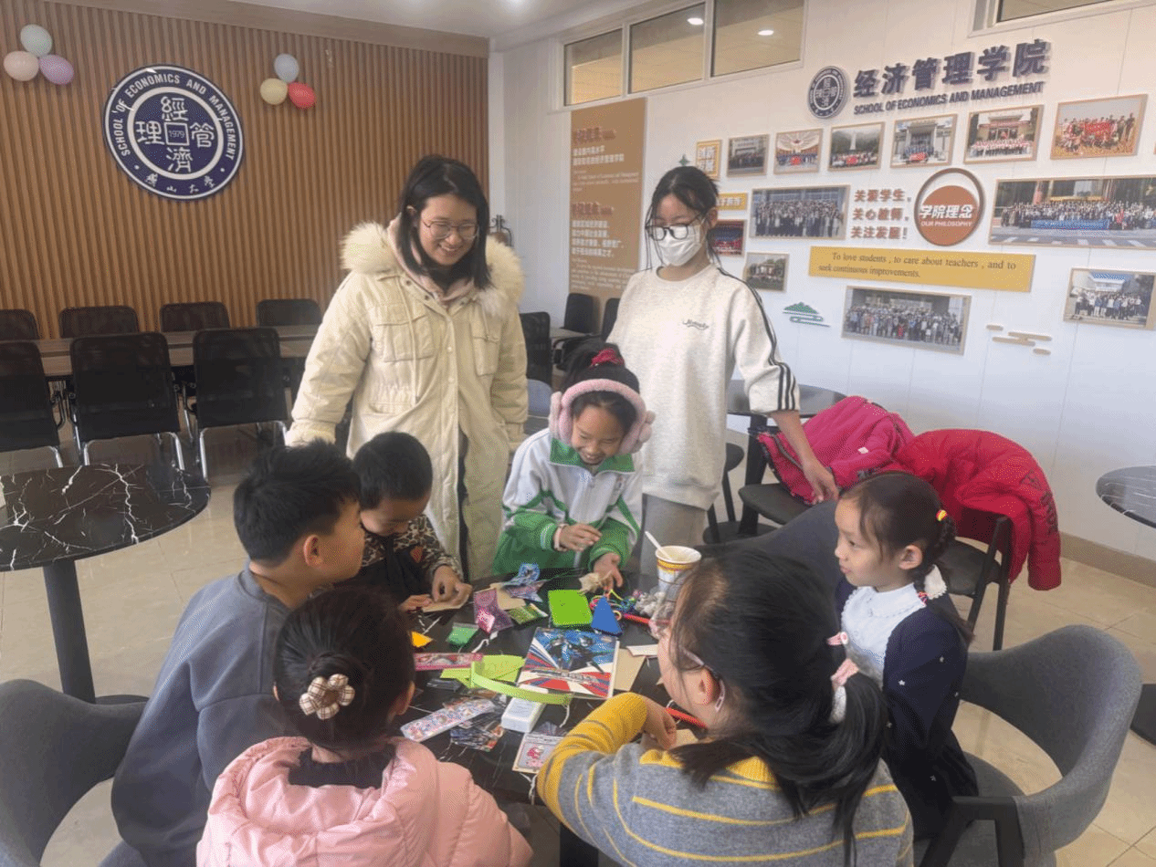 分工会主办,团委学生会、青年先锋队、大学生科学技术协会协助,在经管楼教职工茶水间开展了“多彩课堂·与爱同行”主题活动,假期前为教职工子女开设托管服务,多个学院20余名教职工子女参加。