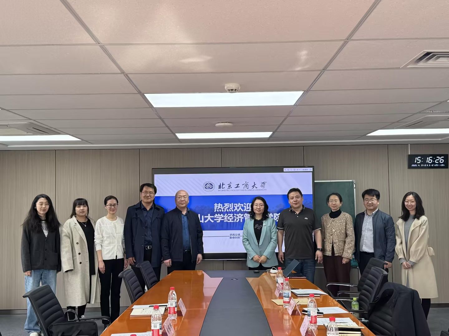 副院长靖鲲鹏、电子商务系党支部书记李世勇、电子商务系主任宓翠和副主任刘琳于2025年4月9日赴北京工商大学计算机与人工智能学院调研交流。北京工商大学计算机与人工智能学院副院长孙晓荣、管理科学与工程系主任李勇、管理科学与工程支部书记蔡圆媛、电子商务专业主任董红宇、大数据管理专业主任焦子豪和计算金融专业主任王思齐参加了此次座谈交流。