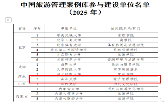 在旅游管理教育领域获得国家级权威认可。中山大学、南开大学、北京第二外国语学院、复旦大学、暨南大学和中央民族大学等高校一同入选。