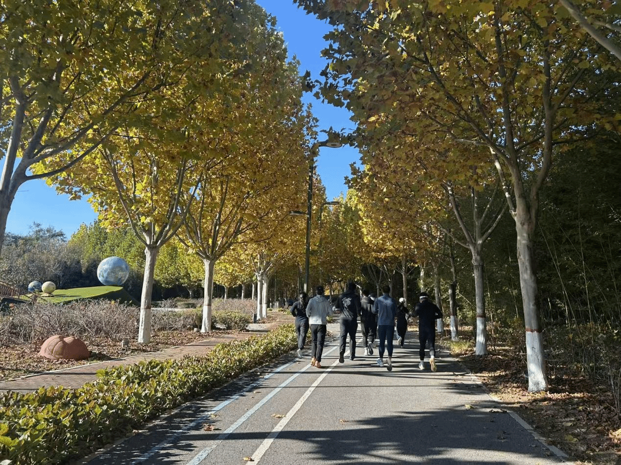 清晨7时许,燕大MBA联合会的参赛队员们便在开发区森林体育公园集合点集结,手持联合会旗帜,成为现场最早完成签到、最富组织性的团队之一。“平时工作忙,但听说联合会组织跑‘家门口’的秋景赛道,大家都特别积极!此次活动由联合会提前策划,参赛学员也想借这次跑步重温同窗情,更以运动之名传递燕大人‘健康、协作、突破’的文化”。