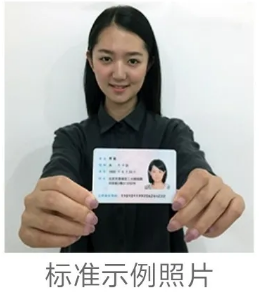 (2)拍摄时,手持本人身份证,将持证的手臂和上半身整个拍进照片。姿态端正,双眼自然睁开并平视,耳朵对称,嘴唇自然闭合,左右肩膀平衡,头部和肩部要端正。