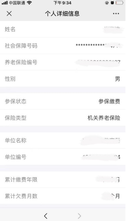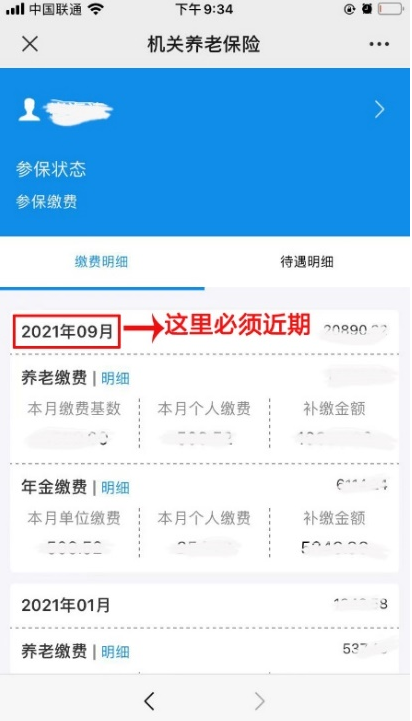 4.点击用人单位名称一栏,进入“缴费明细”页面后截图(如下示例)