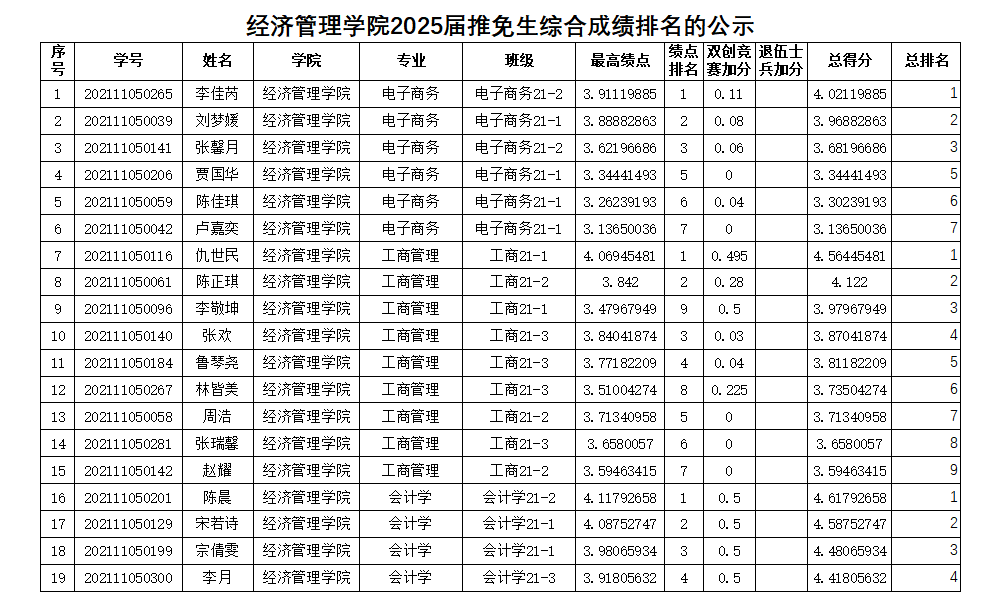 根据学校相关工作要求,按照av中文 《关于做好2025年推荐优秀应届本科毕业生免试攻读研究生遴选工作的通知》,经av中文 推免工作小组审核,现将李佳芮等56名2025届推免生综合成绩予以公示。若有异议,请于公示期内向学院推免工作小组。公示日期:9月11日一9月13日电话:0335-0335-8072029,8077302