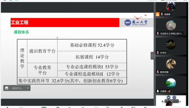 课程思政示范课程、教学名师及教学团队建设方案》(燕大校字〔2021〕233 号)和《课程思政与思政课程“双向融合”联合备课教研活动方案》的指导下,10月20日下午工业工程系与中国近现代史纲要教研部开展课程思政与思政课程“双向融合”联合备课教研活动,由于疫情影响,本次联合备课线上进行。参加本次活动的为工业工程系全体教师和中国近现代史纲要教研部6位教师。