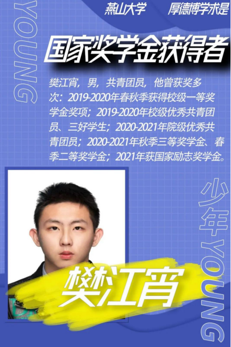 2019级生产与物流管理专业1班本科生樊江宵的话。他也是2021年国家奖学金的获得者。他曾获奖多次:2019-2020年春秋季获得校级一等奖学金奖项;2019-2020年校级优秀共青团员、三好学生;2020-2021年院级优秀共青团员;2020-2021年秋季三等奖学金、春季二等奖学金;2021年获国家励志奖学金。