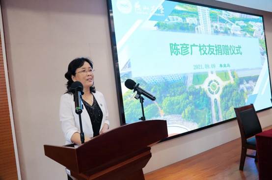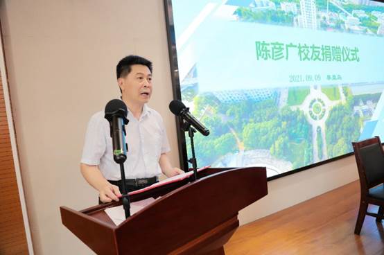 院长李春玲回顾了陈彦广校友与学院的渊源,以及陈彦广校友萌生捐赠想法的初衷,对陈彦广校友的爱院情节表示赞许与衷心的感谢。她表示,陈彦广校友多年来一直关注学院发展,在人才培养、专业建设等多方面为学院助力。校友是学院最为宝贵的资源和财富,希望校友们继续和学院保持密切联系,在全面参与母校人才培养、科技服务、文化传承中打造校友文化品牌。
