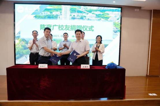 王德松与陈彦广校友共同签署捐赠协议,并代表学校对陈彦广校友用心、用情、有温度的捐赠表示深深地感谢。他表示学校新百年第四次创业新征程离不开广大校友的鼎力支持,希望以陈彦广为代表的广大校友在做大做强企业的同时与母校进行更多合作,散发皓月之辉。之后,王德松副校长为陈彦广校友颁发了捐赠证书与纪念章,并赠送av中文