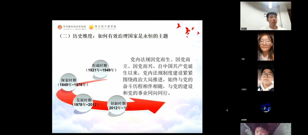 本科生第六党支部开展了对“凝心铸魂·聚力发展”党员空中课堂第八期培训班课程的线上学习会议。党支部全体党员参加会议。