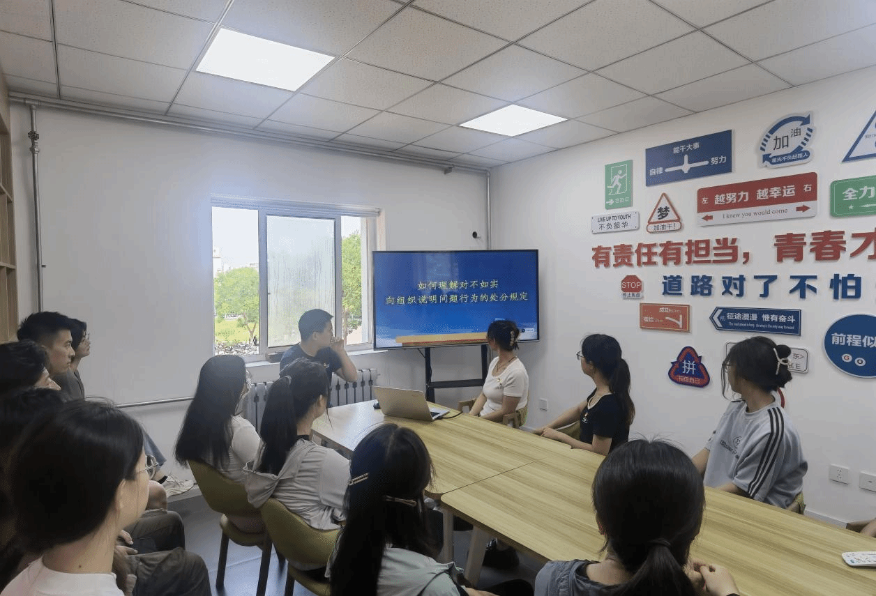 本次党课旨在通过系统学习党的纪律和规矩,增强学生党员的党性修养,提高政治觉悟,确保党的各项决策部署在学生群体中落地生根。党课回顾了党的历史,强调了党的纪律和规矩在党的发展历程中的重要作用,用现实的案例向支部党员展示了党的纪律是党的生命线,是维护党的团结统一、保持党的先进性和纯洁性的重要保障。此外,课堂上胡小慧详细解读了《中国共产党纪律处分条例》中的重点内容,让学生党员们深刻理解了违反党的纪律和规矩的严重后果,作为一名党员,必须时刻保持清醒的头脑,筑牢思想防线,坚守政治纪律和政治规矩。