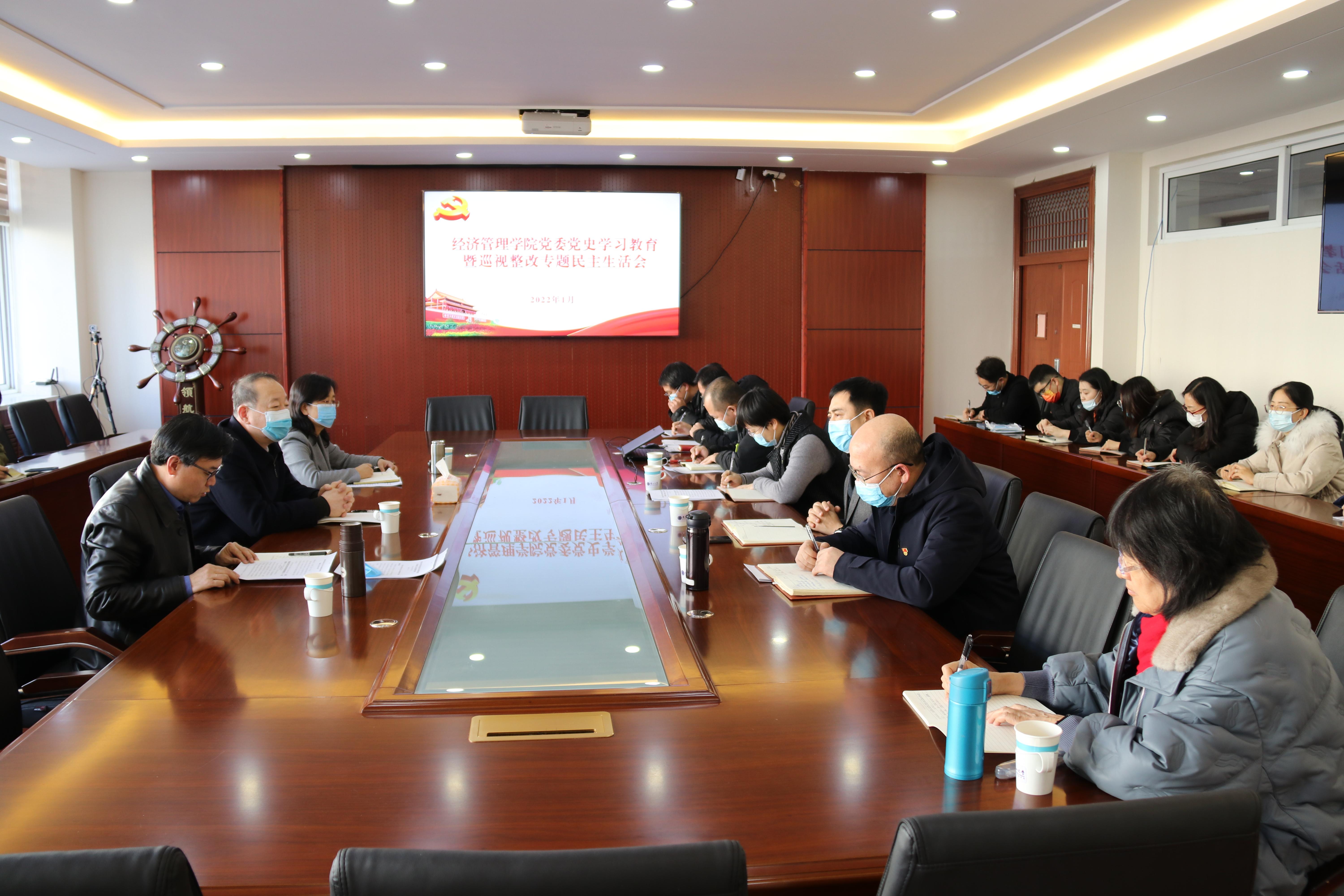 党委于1月11日下午15时,在西校区经管楼A215会议室召开了党史学习教育暨巡视整改专题民主生活会,校党委副书记谢延安全程指导。会议由学院党委书记张振华主持,院党委委员、科级干部、党支部书记列席。