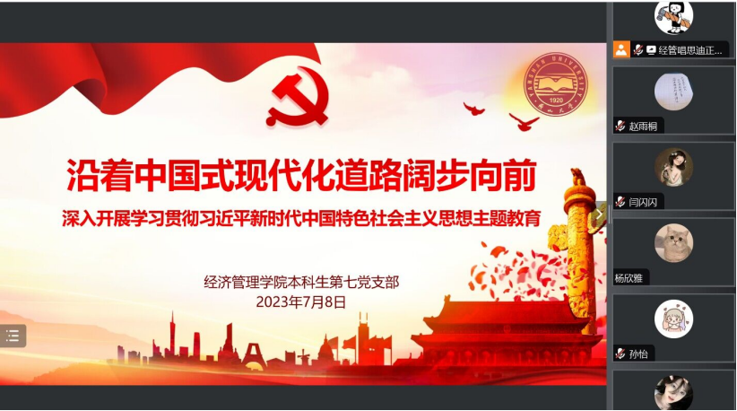 本科生第七党支部开展主题教育专题党课,党支部书记唱思迪面向支部全体党员,以《沿着中国式现代化道路阔步向前》为题进行讲授。