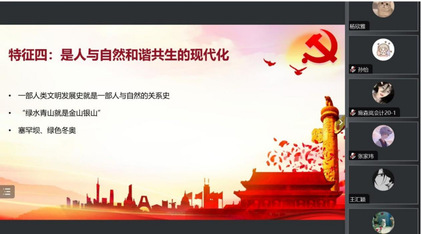 唱思迪结合党的二十大报告,对中国式现代化进行阐述,指出党的二十大描绘的全面建成社会主义现代化强国的宏伟蓝图,正是青年人成长和施展才干的舞台。唱思迪从中国式现代化的五大鲜明特征出发,阐述中国式现代化是什么,从哪里来以及到哪里去,并结合学习和工作实际,号召学生党员树立强烈的历史使命感和责任感,努力提高自身科学文化素质,在实践中练就过硬本领,让青春在全面建设社会主义现代化国家的火热实践中绽放绚丽之花。