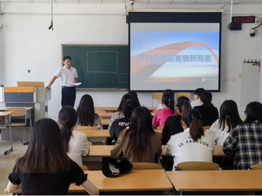 本科生第六党支部党员、积极分子在经管楼教室开展题为“开创高质量发展新局面”的党课学习,本次专题党课学习由党支部书记胡小慧主持,共30名学生参加了本次活动。