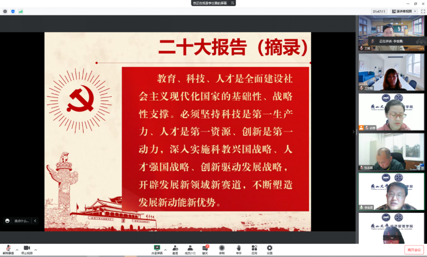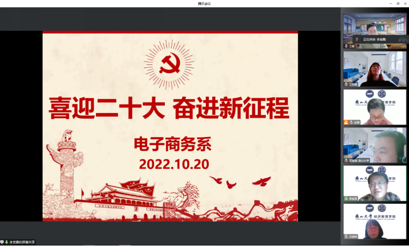 10月20日下午,电子商务系党支部以线上会议方式深入学习了党的二十大报告,支部书记李世勇主持了学习活动,电子商务系全体教师参加了学习活动,av中文