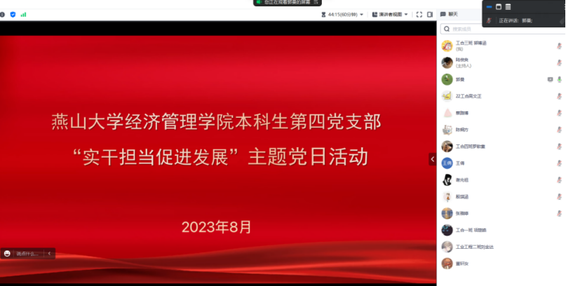 本科生第四党支部以腾讯会议的方式召开了“实干担当促进发展”主题党日活动。活动由郭曼主持,支部全体成员参加了此次会议。