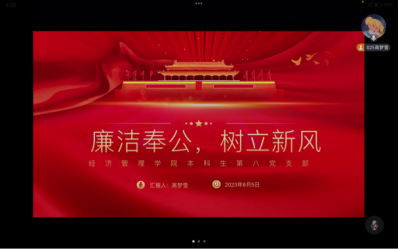 第八党支部通过线上形式开展“廉洁奉公树立新风”主题党日活动,对习近平总书记关于廉洁奉公重要论述进行了学习。