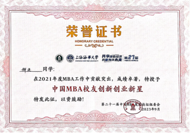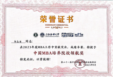 在第二十一届发展论坛颁奖典礼暨闭幕式上,我校斩获2021-2023年度“中国MBA培养院校领航奖”“中国MBA十大精英人物”“中国MBA校友创新创业新星”“中国MBA新秀”100等多项优秀团体及个人荣誉。其中,陈晶璞、刘海鸥荣获“中国MBA培养院校领航奖”,刘景秀荣获“中国MBA十大精英人物”,解通、张小娜荣获“中国MBA校友创新创业新星”,国博、宫臣、关群、谢昆、李豹强等荣获“中国MBA新秀”100。沉甸甸的荣誉既是对我校长期以来在商科教育方面做出的重要贡献及近年来相关工作取得的累累硕果的肯定和鼓励,更凝聚着一份责任和担当,是对我校未来MBA项目工作的鞭策和动力。